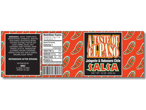 A Taste of El Paso chile sauce label